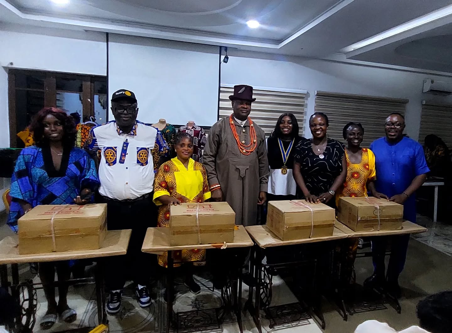 Presenting the sewing machines to the beneficiaries, who were drawn from Koko-Ama, one of the host communities of the Rotary Club of Port Harcourt Garden City, District Governor District 9141, Rtn Anthony Woghiren charged them to make best use of the machines to perfect the sewing skills they have learnt and empower their families by making a good living.