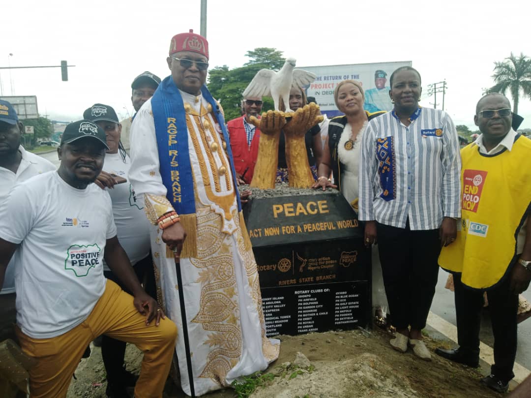 Port Harcourt, Nigeria — In a poignant call for stability, the Rivers State chapter of the Rotary Action Group for Peace (RAGFP), collaborating with 29 Rotary Clubs in the state, inaugurated a Peace Monument on Saturday at the UTC Junction along Azikiwe Road, Port Harcourt. The event, held to commemorate the International Day of Peace, served as a public demand for collective action against rising insecurity and political tensions.